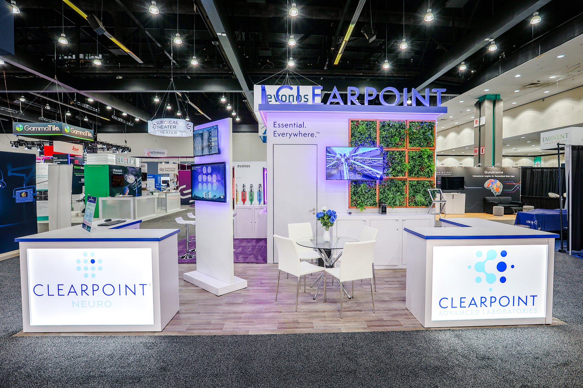 ClearPoint Neuro needed a sophisticated and welcoming environment for the Congress of Neurological Surgeons, a space that embodied the brand’s commitment to precision, innovation, and patient-focused technology. The challenge was to design a 20’x20’ custom rental exhibit that conveyed clinical clarity while maintaining warmth and approachability. The environment had to balance medical precision with human connection, integrating digital displays, clean materials, and a modern hospitality zone within a compact footprint.